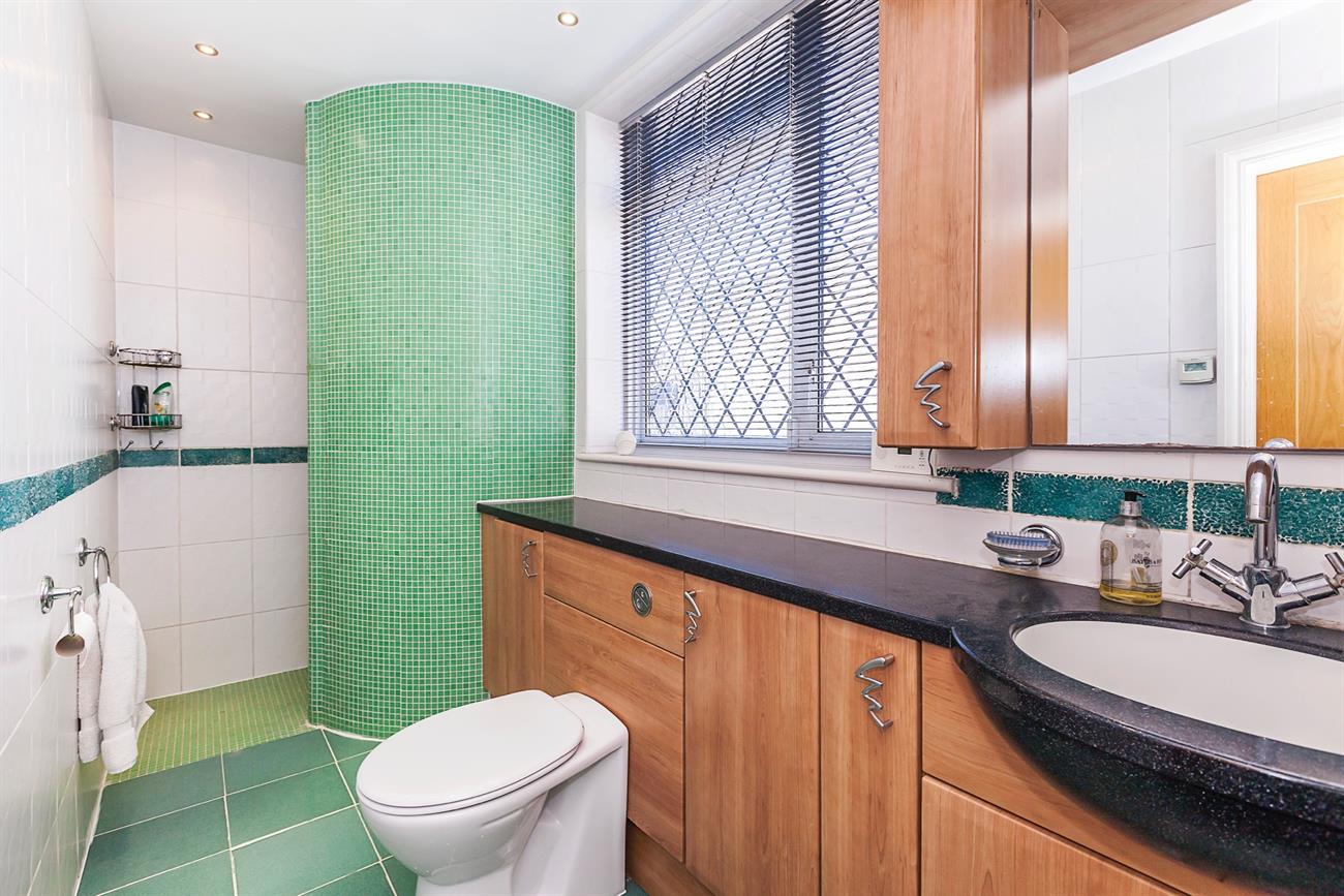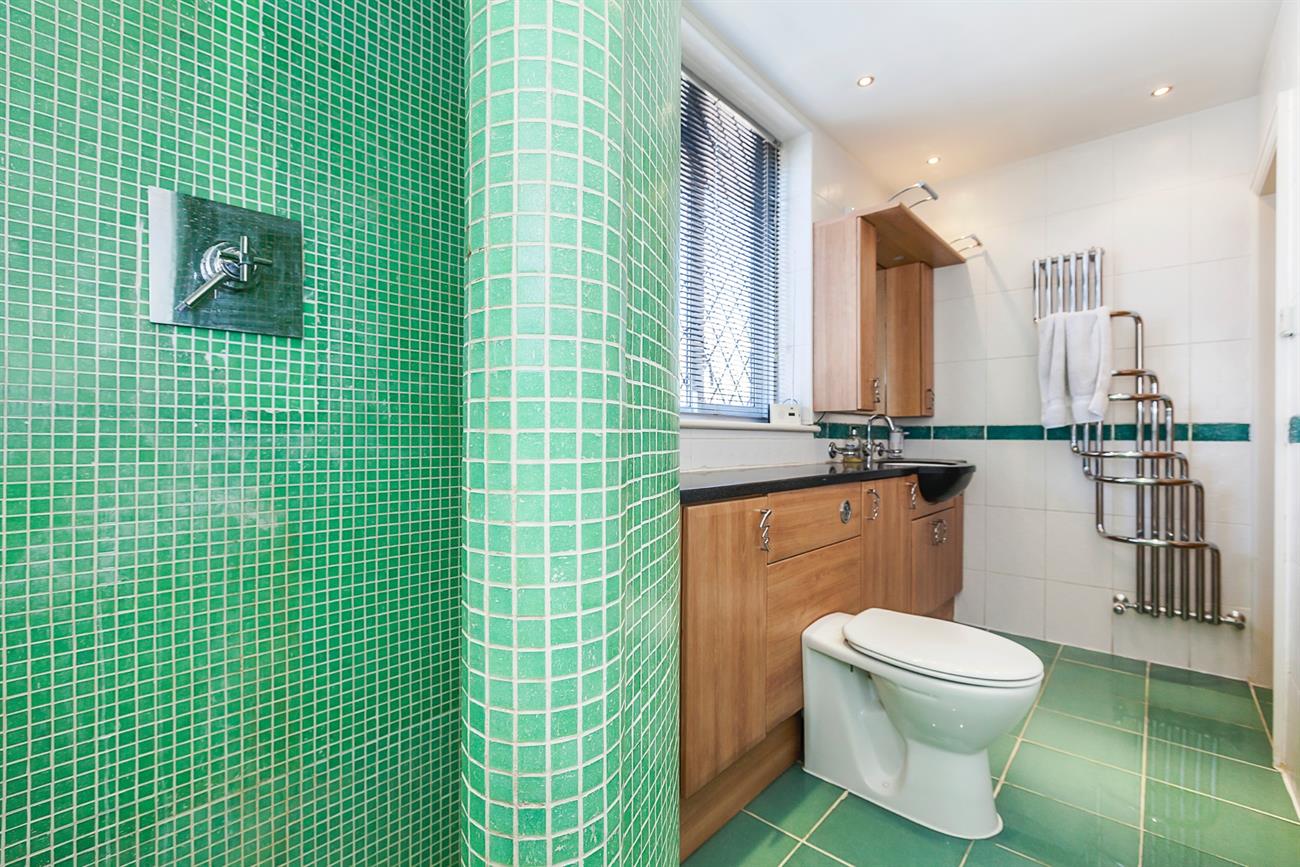 Floor Wet Room: 11′ 9 x 5′ 3" With heated tiled floor this large wet room has enclosed shower, low level WC and wash hand basin with complete range of cupboards under and to sides. Featured spiral radiator and Double glazed window to sides.