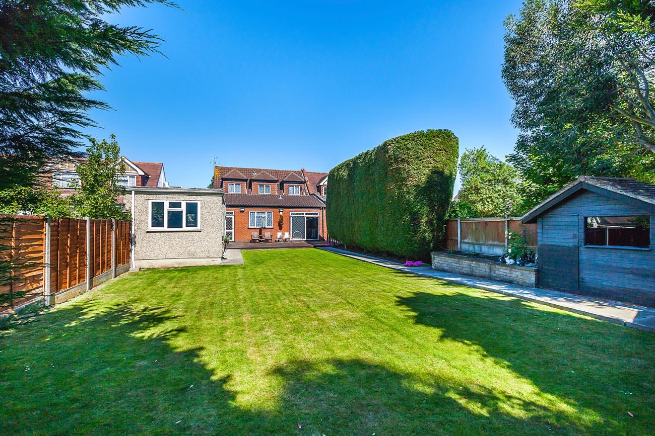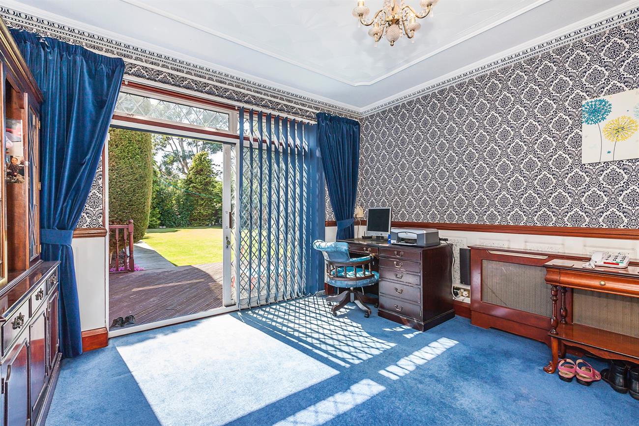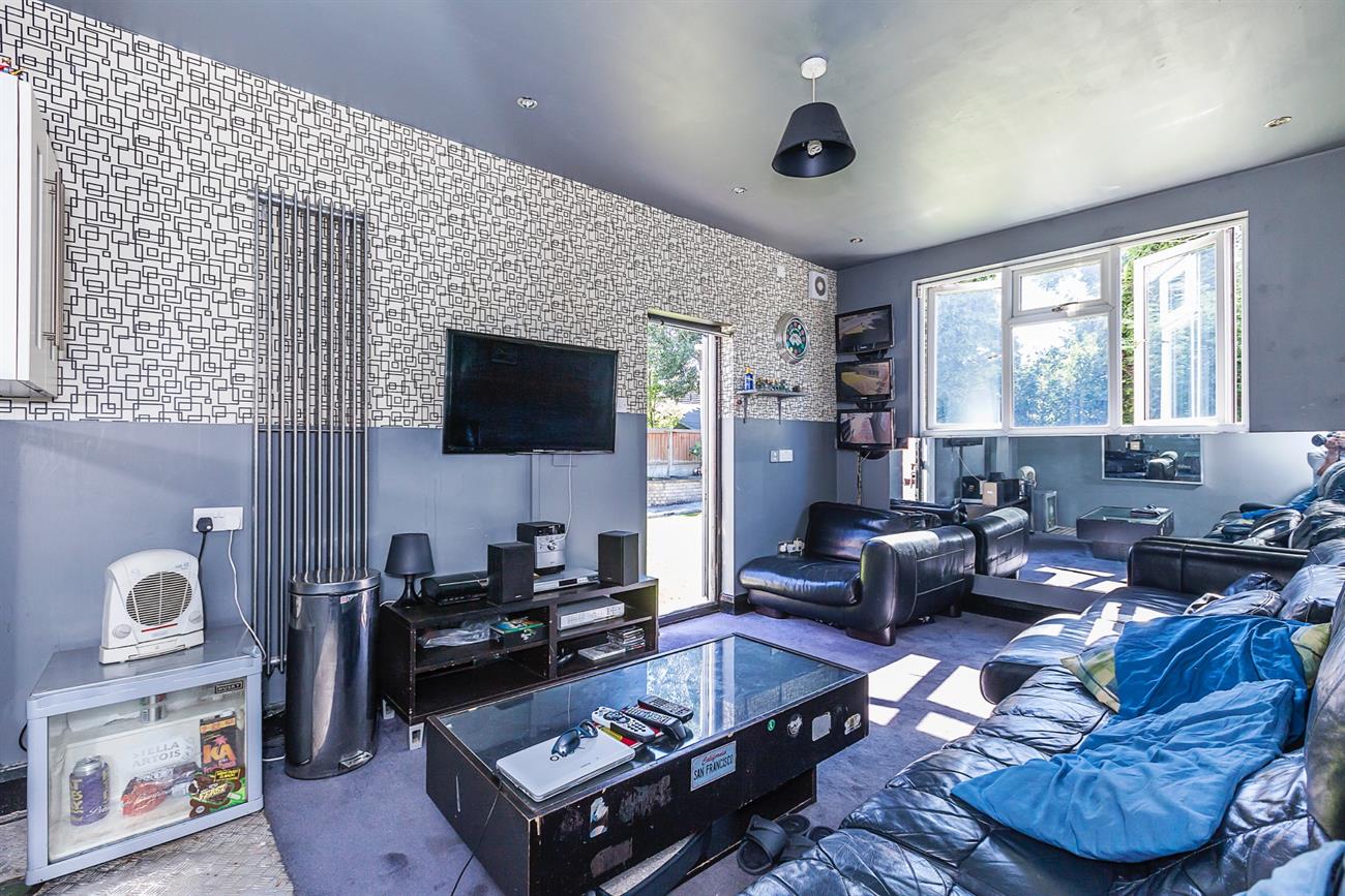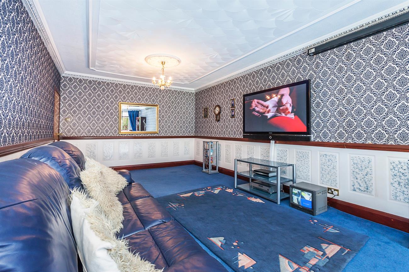 Lounge: 26′ 10" X 10′ 5" : With Open aspects to rear garden this excellent size family lounge has featured moldings to ceilings, and center roses, sliding double glazed doors lead onto a decked area and in turn onto the laid to lawn garden.